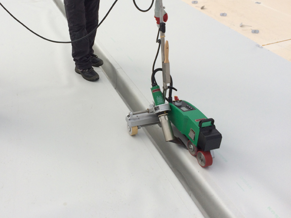 | | Deutschland, Ettlingen, Tiefkühllager, Dachabdichtung mit TPO-Dachbahnen |