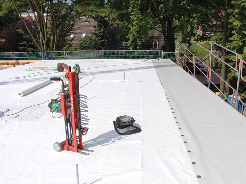 | | Deutschland, Papenburg, EDEKA Markt, Dachabdichtung mit mechanisch befestigten Dachbahnen |