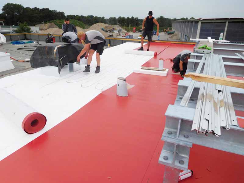 | | Deutschland, Herbolzheim, Neubau Produktionshalle, Dachabdichtung mit TPO-Dachbahnen |