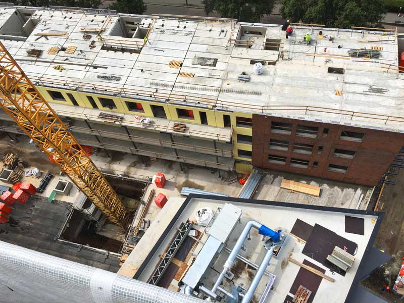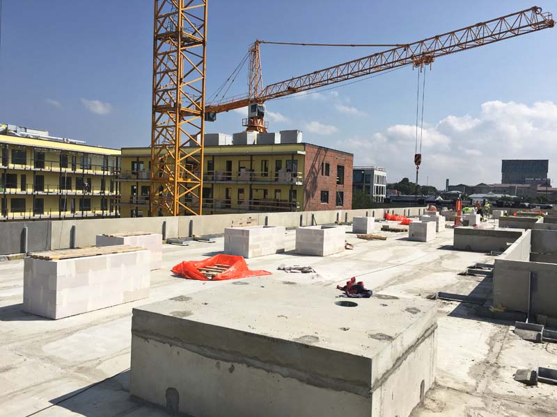 | | Deutschland, Braunschweig, Flachdachsanierung der Abdichtungsebene |