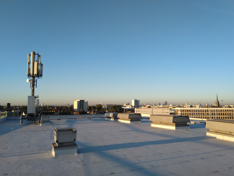 | | Deutschland, Köln, Neubau Bürogebäude Coeur Cologne, Dachabdichtung mit TPO-Dachbahnen |