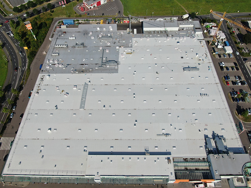 | | Deutschland, Papenburg, EDEKA Markt, Dachabdichtung mit mechanisch befestigten Dachbahnen |