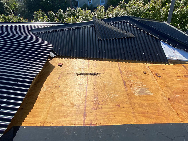 | | Deutschland, Braunschweig, Flachdachsanierung der Abdichtungsebene |