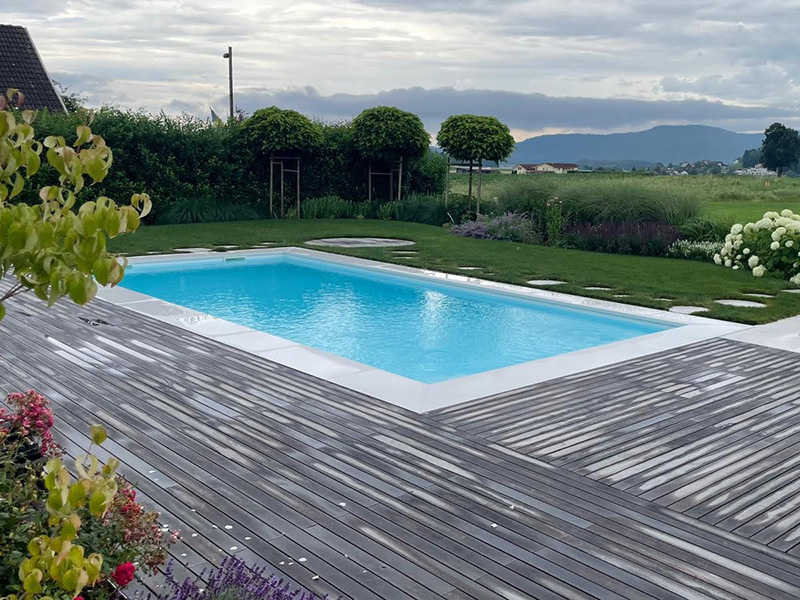 | | Deutschland, Gernsheim am Rhein, Schwimmteich eines privaten Bauherrn |