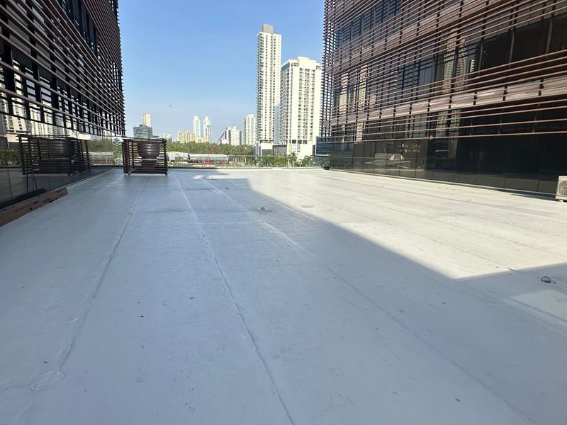 | | Deutschland, Köln, Neubau Bürogebäude Coeur Cologne, Dachabdichtung mit TPO-Dachbahnen |